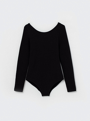 Купальник с длинным рукавом. Вырез горловины и проймы ножек окантованы бейкой из основного полотна.