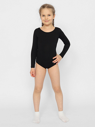 Гимнастический купальник слитный с шортиками, с коротким рукавом. Вырез горловины окантован бейкой из основного полотна.