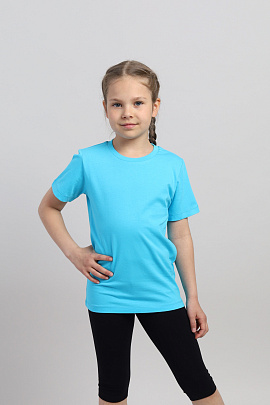 Футболка детская с коротким рукавом. Вырез горловины круглый, обработан притачной бейкой из рибаны с эластаном.