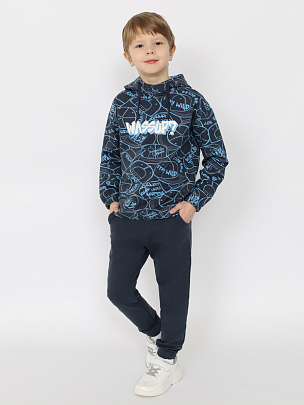 Костюм для мальчика (толстовка, брюки) индиго-оранжевый