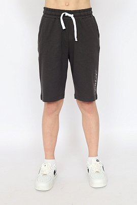 Шорты для мальчика из кулирной глади повышенной плотности. Верх шорт обработан притачным поясом из основного полотна, внутрь вставлена резинка и шнурок. На передних половинках расположен карман. Нижняя часть переда декорирована принтом.