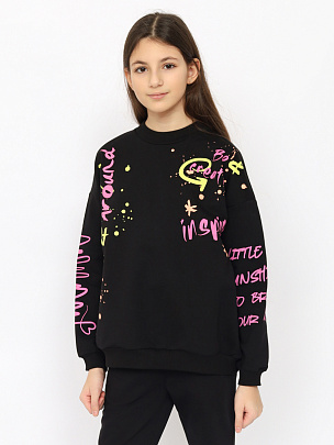 Джемпер для девочки с трендовым принтом "Красота вокруг, будь творческим, вдохновляй", выполнен из мягкого футера на основе хлопка, который прост в уходе, хорошо пропускает воздух и комфортен в носке. Крой оверсайз с заниженной линией плеча не сковывает движения, позволяя ребенку быть активным. Модель дополнена круглым воротником и длинными рукавами. Горловина, манжеты и низ оформлены рельефной резинкой.