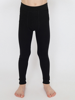 Кальсоны из рибаны с эластаном и начесом с изнаночной стороны, с клиновидными вставками спереди. Притачной пояс и манжеты по низу ножек выполнены из рибаны с эластаном. В пояс вставлена резинка. Кальсоны без боковых швов.