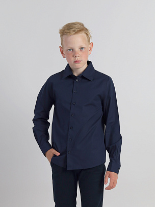 Рубашка полуприталенного силуэта, с длинным рукавом и притачными манжетами. Воротник обтачной с притачной стойкой и пуговицами. Застежка центральная на петли и пуговицы.