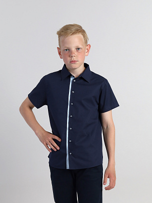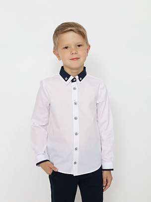 Рубашка полуприталенного силуэта, с длинным рукавом и притачными манжетами. Воротник обтачной с притачной стойкой и пуговицами. Застежка центральная на петли и пуговицы.