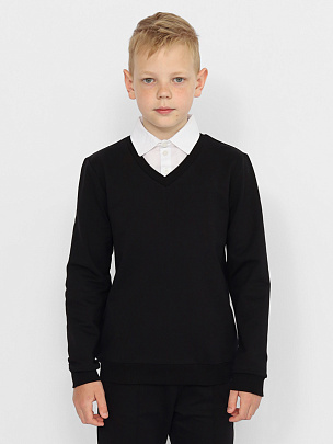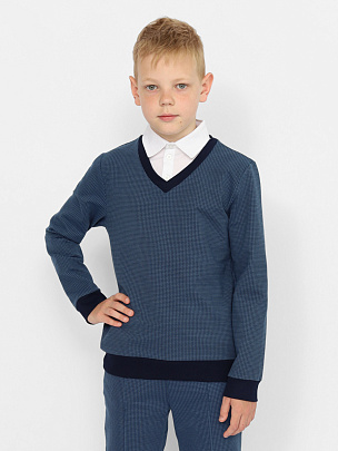 Джемпер для мальчика свободного силуэта с карманом спереди и притачным эластичным поясом по низу. Горловина круглая, обработана притачным воротником из полотна с эластаном. Рукава длинные с эластичными манжетами по низу. Перед джемпера декорирован принтом "Маленькие шаги приводят к большим переменам".