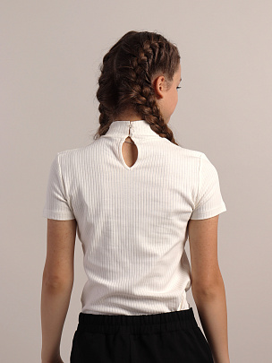 Водолазка из интерлока с разборой(лапша), с короткими рукавами и воротником-стойкой.
