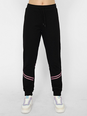 Костюм для девочки с лампасами. Толстовка на молнии и брюки-джоггеры из футера, манжеты и пояс с резинкой. Толстовка с рукавом-реглан, с воротником-стойкой. Спереди карман-кенгуру. Контрастные лампасы на рукавах и брюках добавляют элемент спортивности. Свободный крой костюма не стесняет движений и позволяет ребенку чувствовать себя уютно и комфортно. Костюм создан в спортивном стиле, для активных и энергичных.