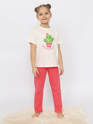 Пижама для девочки из футболки и шорт. Футболка оверсайз с круглой горловиной и короткими рукавами, свободного кроя с милым принтом. Шорты, без карманов из набивного хлопка, имеют удобную посадку, благодаря широкому эластичному поясу. Изделие изготовлено из мягкого и приятного на ощупь полотна. Пижама с шортами - это удобная и универсальная домашняя одежда, в которой можно спать, но и провести весь выходной.